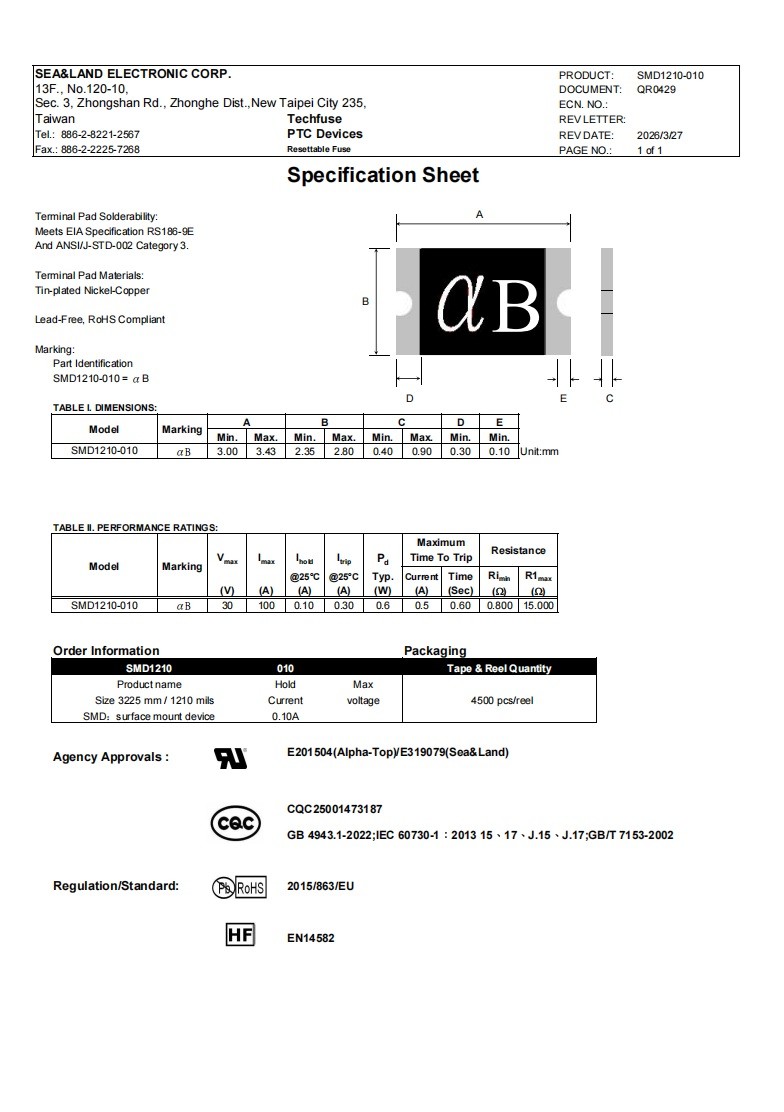 型号:SMD1210-010