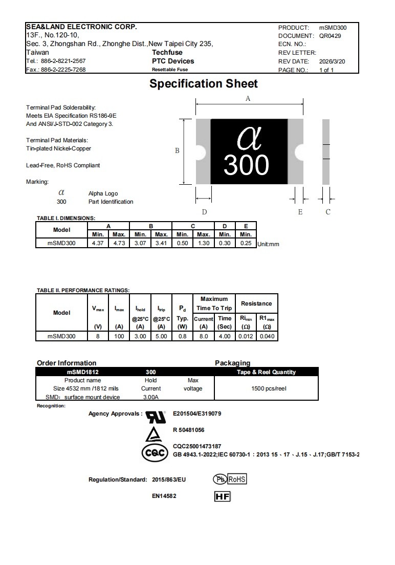 型号:mSMD300