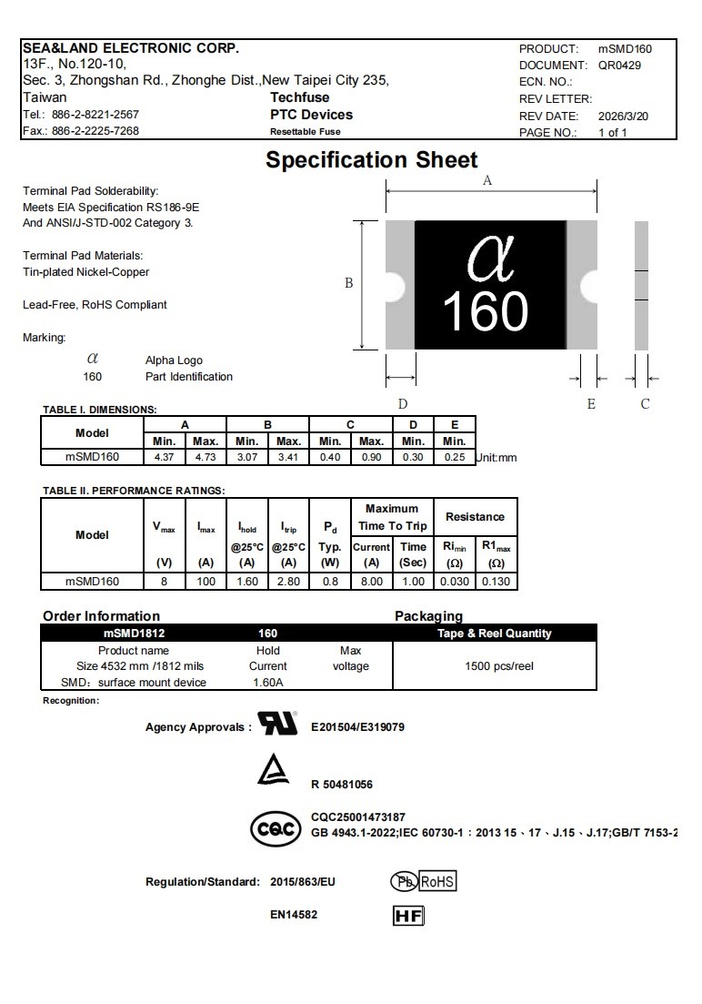 型号:mSMD160