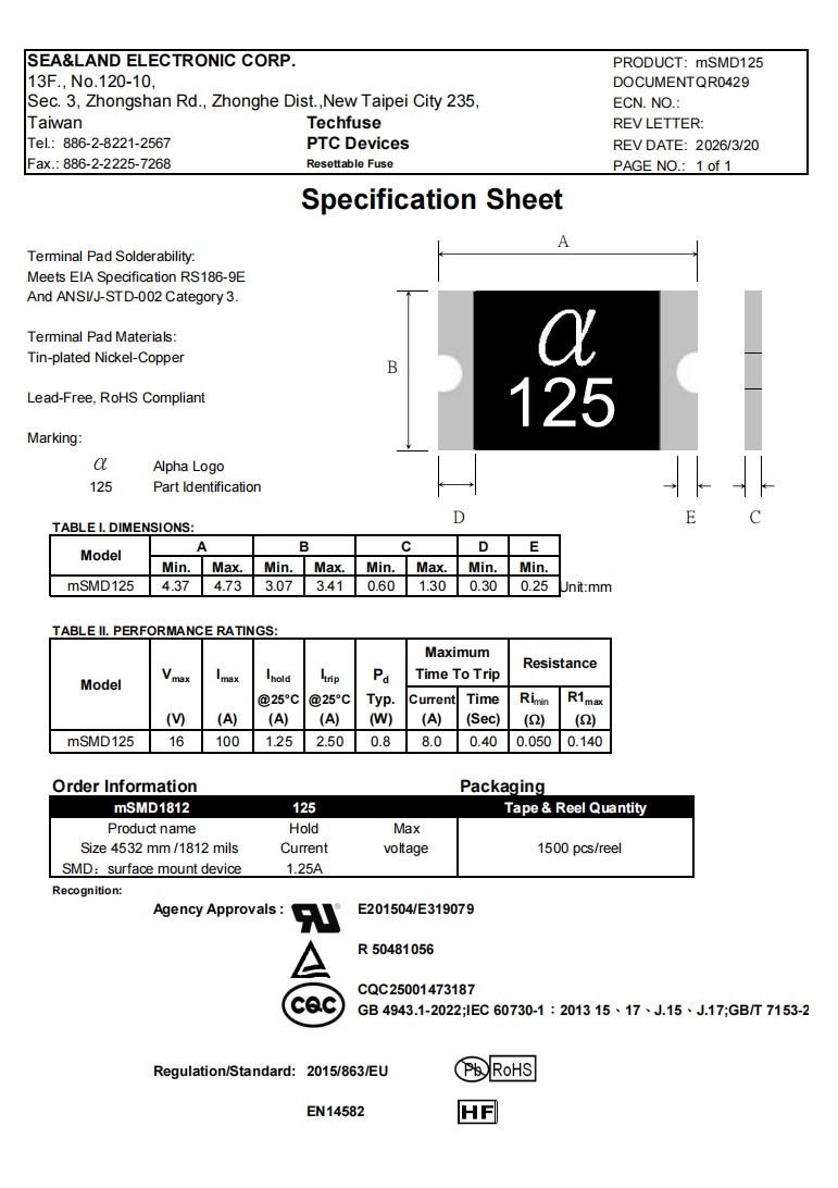 型号:mSMD125