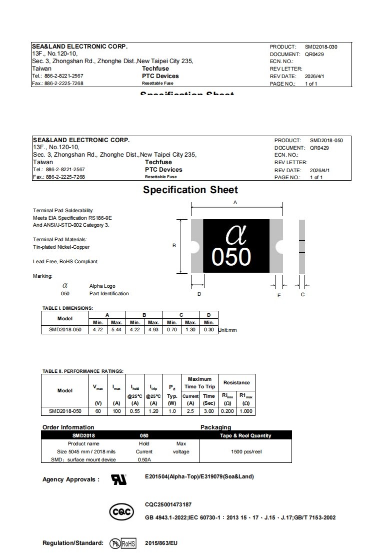型号:SMD2018-050