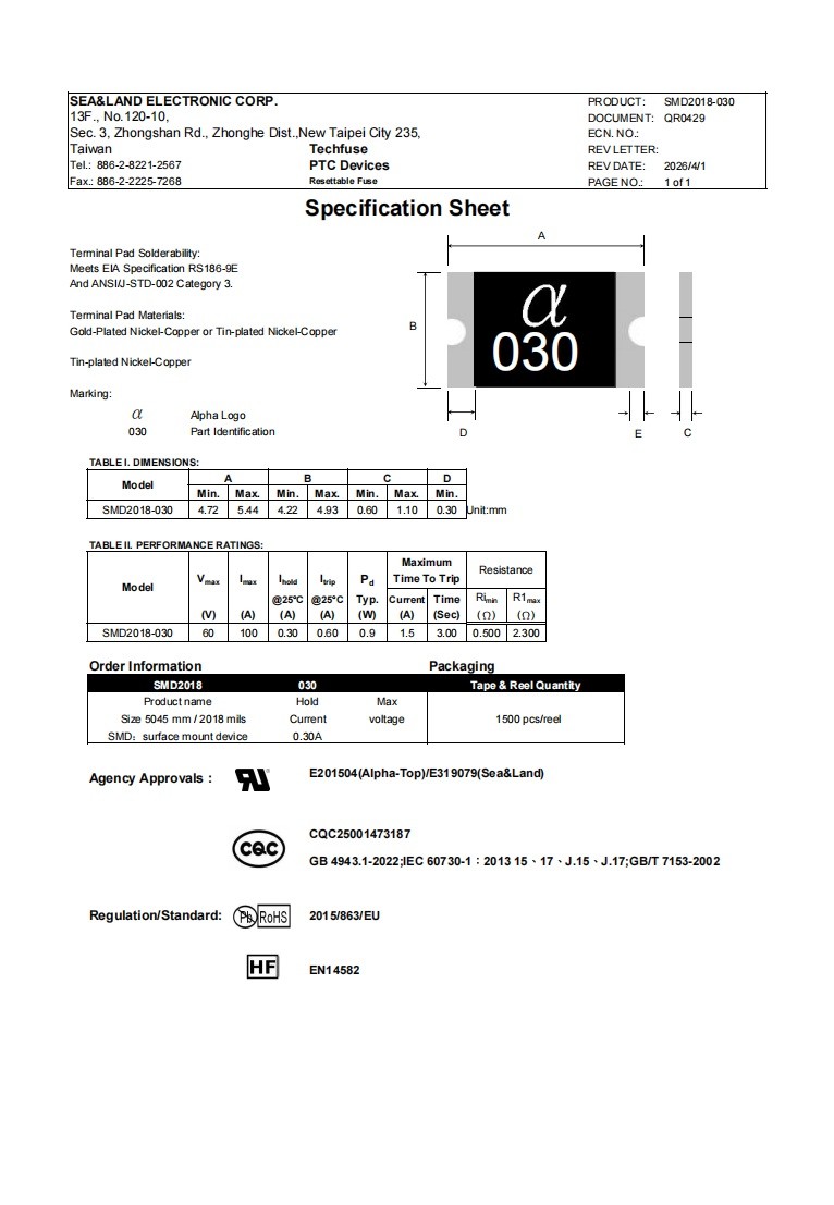 型号:SMD2018-030