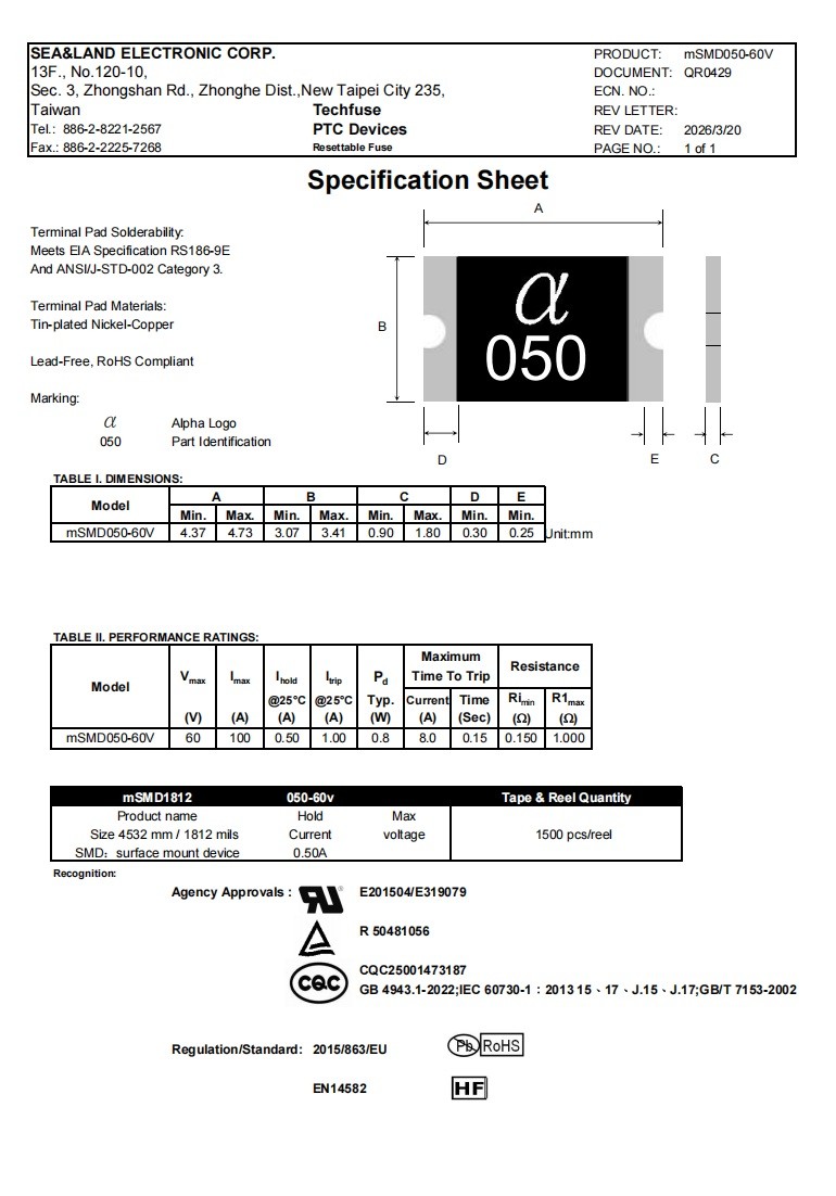 型号:mSMD050-60V