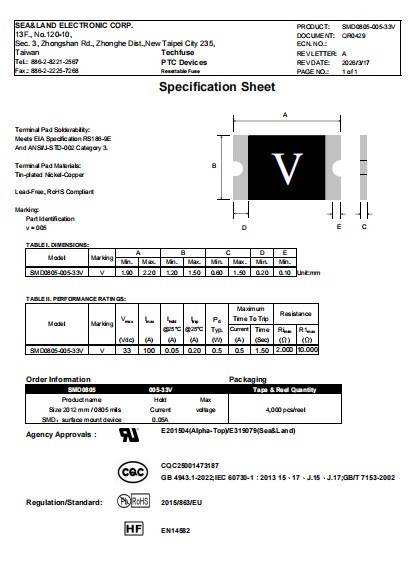 型号:SMD0805-005-33V