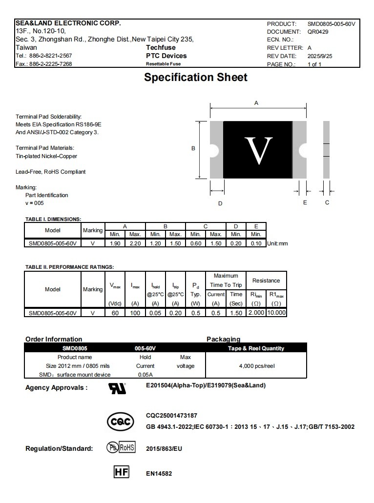 型号:SMD0805-005-60V